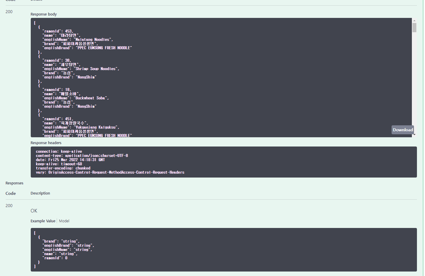 그리고 중간에 Request URL까지 떡하니 나와있으니 편하게 API사용하듯이, React의 경우는 Axios를 사용해주면 된다.