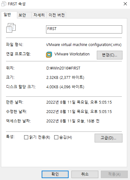이와같이 .vmx로 되어잇는 파일이 있다 그안에