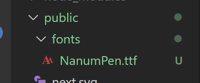 1.next.js 프로젝트에 public/fonts 폴더까지 만들어주고 폰트파일을 넣어준다.