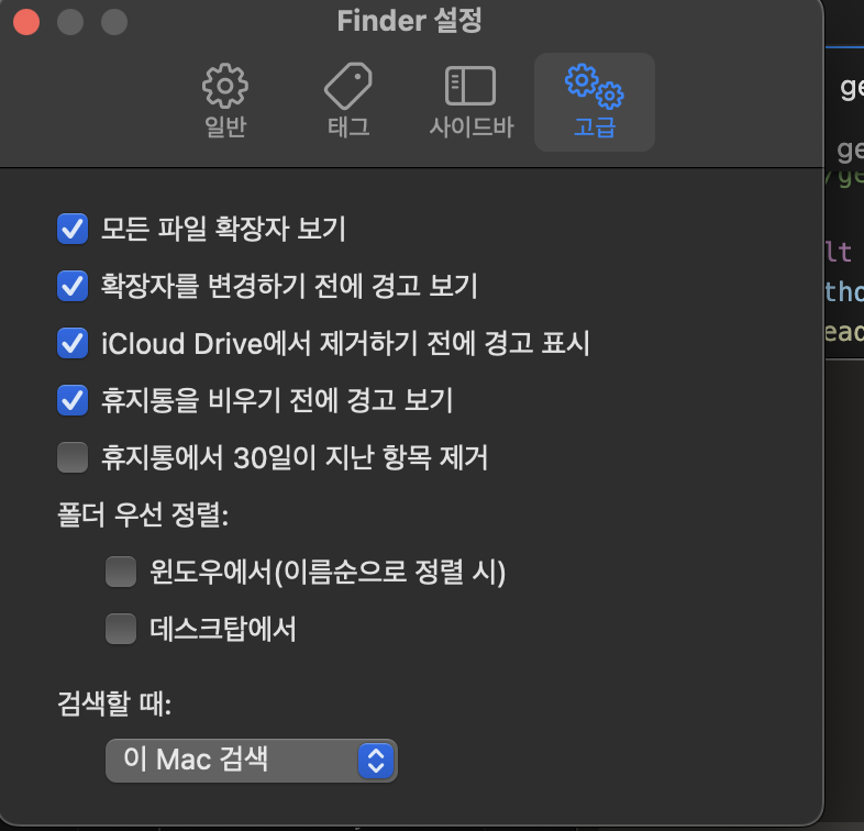 참고로 맥북의경우는 파일 확장자까지 나오게 설정해줘야하는데
