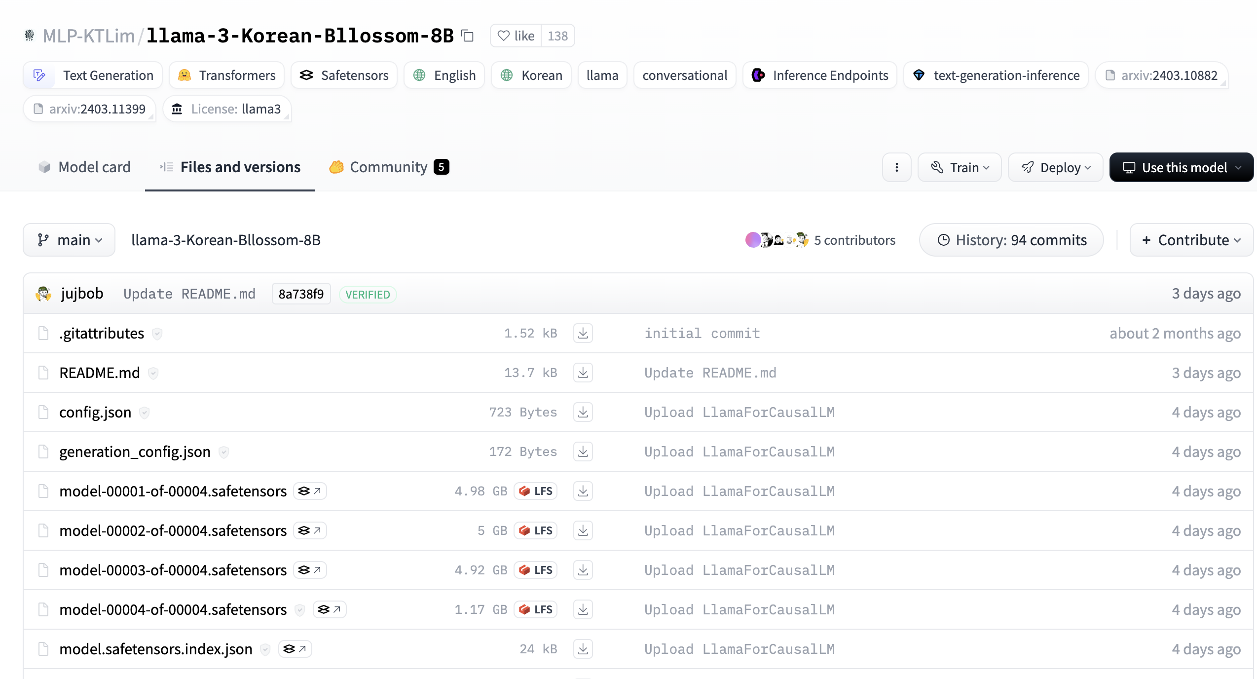 meta에서 공식으로 풀어준 llama3 말고도 사람들이 튜닝? 같은걸해서 여러 버전으로 특화해 놓은게 있다. 그중에서도 한국어 잘 알아먹게