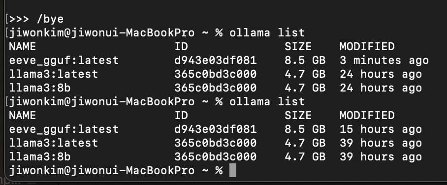 ollama create eeve_gguf -f Modelfile