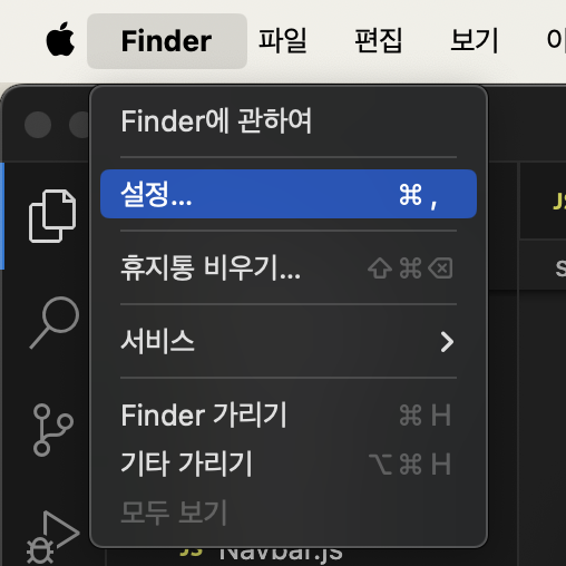 아무 폴더에 들어가서 Finder -> 설정 -> 고급 에서 모든 파일 확장자 보기 설정을 해줘야한다.
