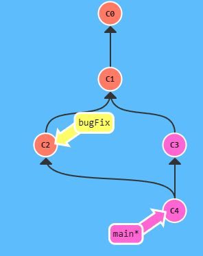 그리고 이상태에서 `git rebase bugFix`라고하게되면