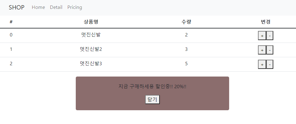 그리고 상단에서 3항연산자로 상태가 바뀌면 닫히게 바꿔주기만 하면 완성이다.