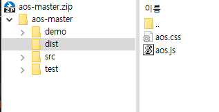 dist/aos.css만 불러와서 사용해 줘도된다.